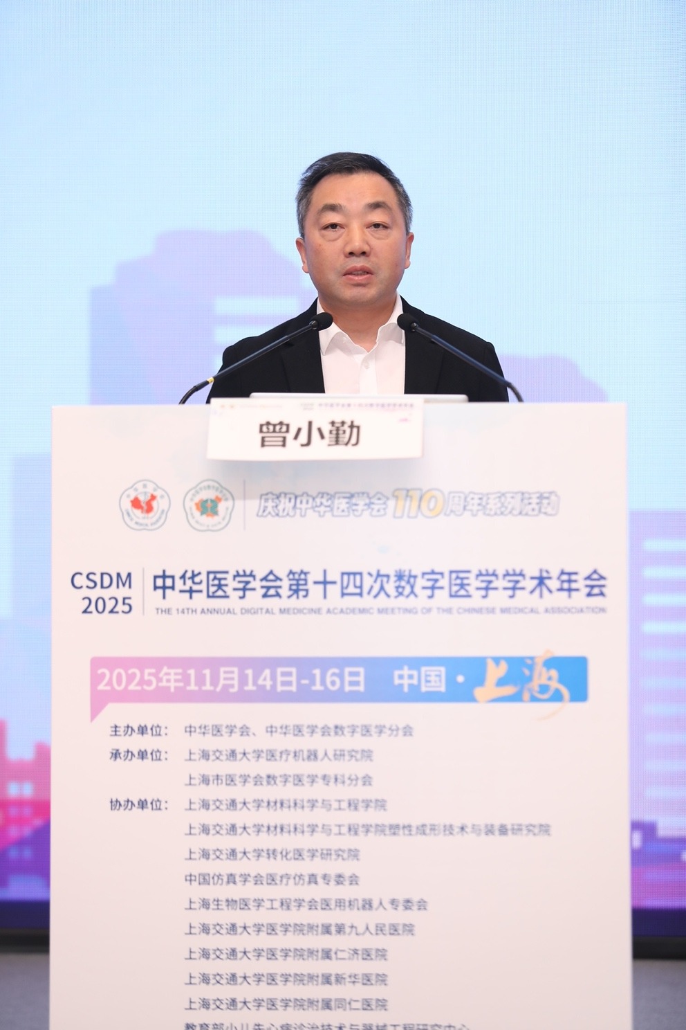 11月15日上午,大会开幕式在上海闵行白金汉爵大酒店举行,来自医学、工程、人工智能、转化医学等多领域的顶尖专家,共同探讨数字医学高质量发展的新趋势、新路径与新动能。av直播 党委常委、副校长曾小勤,中华医学会数字医学分会主委刘军,上海医学会会长邬惊雷,上海交大医疗机器人研究院首席科学家杨广中发表致辞。
