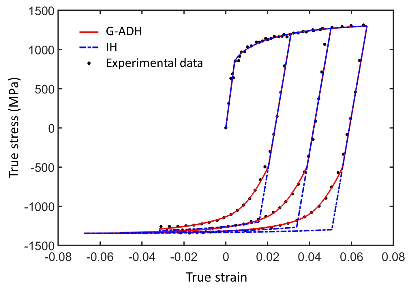 基于解析型Yoon2014屈服模型提出的应力不变量扭曲硬化模型ADH2022其屈服轨迹曲率偏大的问题,即其不适合FCC结构金属材料。陈军教授和胡启副教授与KAIST大学Jeong Whan Yoon院士合作,研究了扭曲硬化模型控制屈服轨迹的必要条件,通过分析其屈服轨迹演化框架的构造形式,提出了一种基于关联流动法则的新型广义各向异性扭曲硬化模型G-ADH,解决了ADH2022中比例屈服轨迹的跳跃现象以及屈服轨迹曲率无法控制的难题,实现了材料复杂应变路径下流动曲线的准确预测以及U型件的拉深回弹预测,研究成果以Anisotropic distortional hardening based on deviatoric stress invariants under non-associated flow rule. Part-II: Generalization combined with non-quadratic yield function under associated flow rule为题发表于塑性力学顶级期刊International Journal of Plasticity,其中胡启副教授为第一作者,陈军教授和Jeong Whan Yoon院士为共同通讯作者 (//doi.org/10.1016/j.ijplas.2025.104256)。