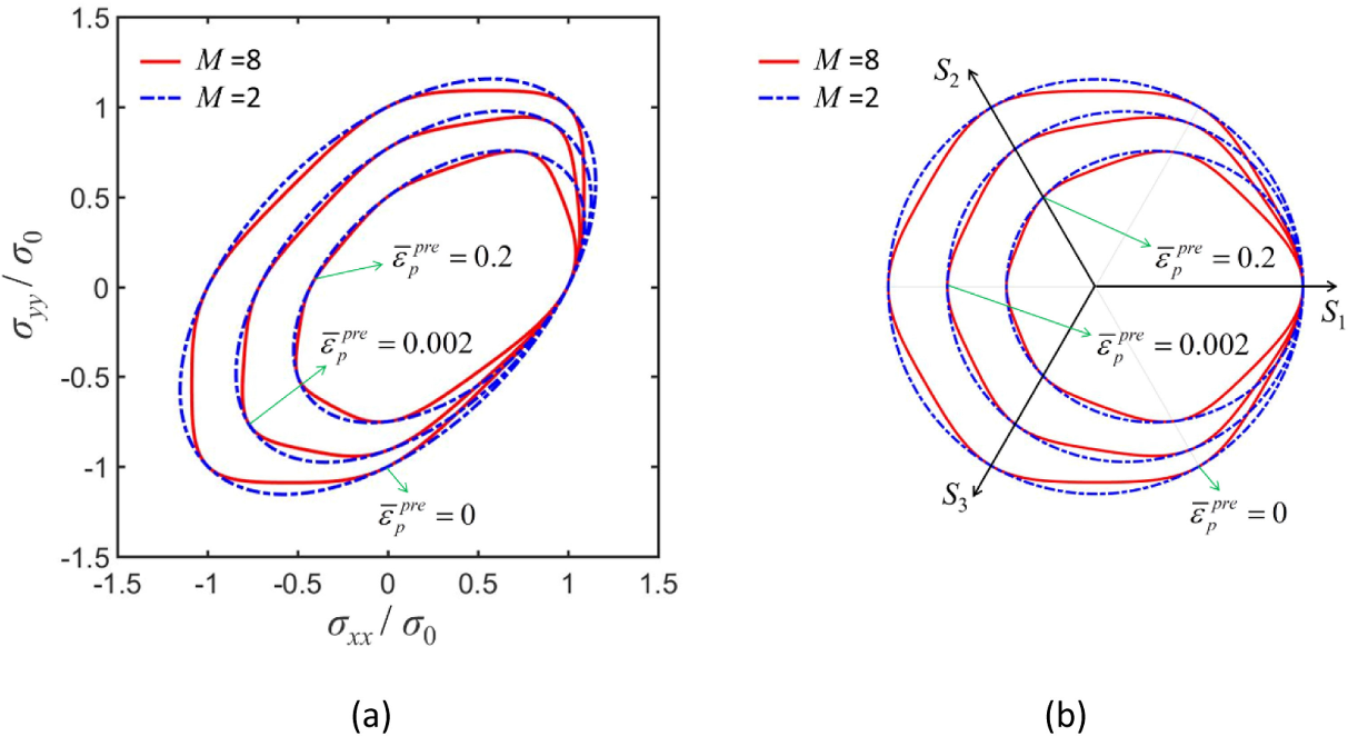 图3.非线性应变路径下屈服轨迹演化规律