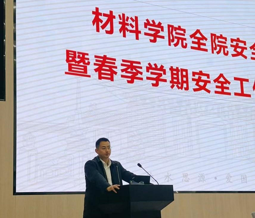 4月2日,材料av直播 安全大会暨春季学期安全工作部署会在材料创新大楼举行。校安环中心副主任彭华松,保卫处副处长齐井刚,材料av直播 党委书记孙丽珍,院长戴庆,副院长韩远飞,各二级研究所所长、书记、安全员,av直播 机关全体同志出席。会议由院长助理曹力军主持。