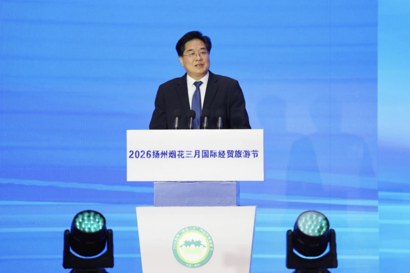 4月18日,2026扬州“烟花三月”国际经贸旅游节开幕式暨重大项目签约仪式在扬州市举行。扬州市委书记王进健在活动上致辞,扬州市委副书记、市长郑海涛作扬州经济社会发展推介,av直播 党委常委、副校长管海兵出席活动并讲话。
